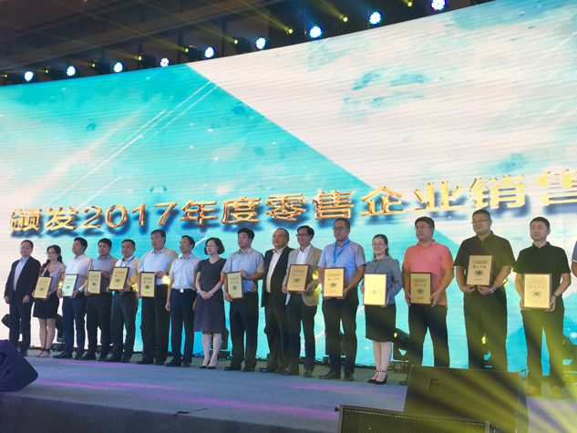 ▲刘景萍董事长受邀为全国二十强连锁颁奖