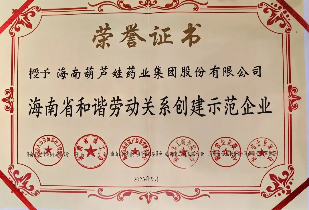 ¶¶È¦Ò©Òµ¼¯ÍÅ»ñÆÀ¡°º£ÄÏÊ¡ºÍгÀͶ¯¹ØÏµ´´½¨Ê¾·¶ÆóÒµ¡±